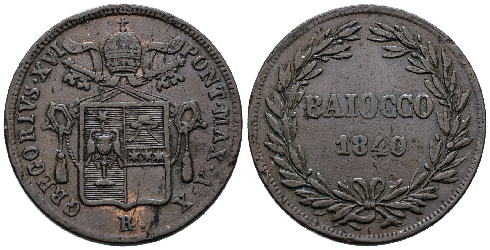 STATO PONTIFICIO. ROMA. Gregorio XVI (1831-1846). Baiocco 1840. Cu; 10,17gr; Gig.167; BB