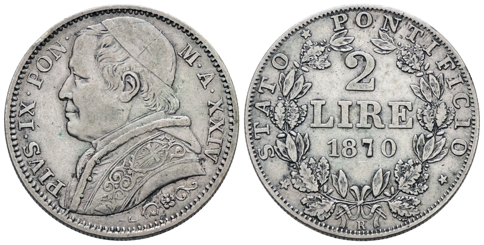 STATO PONTIFICIO. ROMA. Pio IX(1846-1870). 2 lire 1870. Ag; 10gr; Gig.291; BB+
