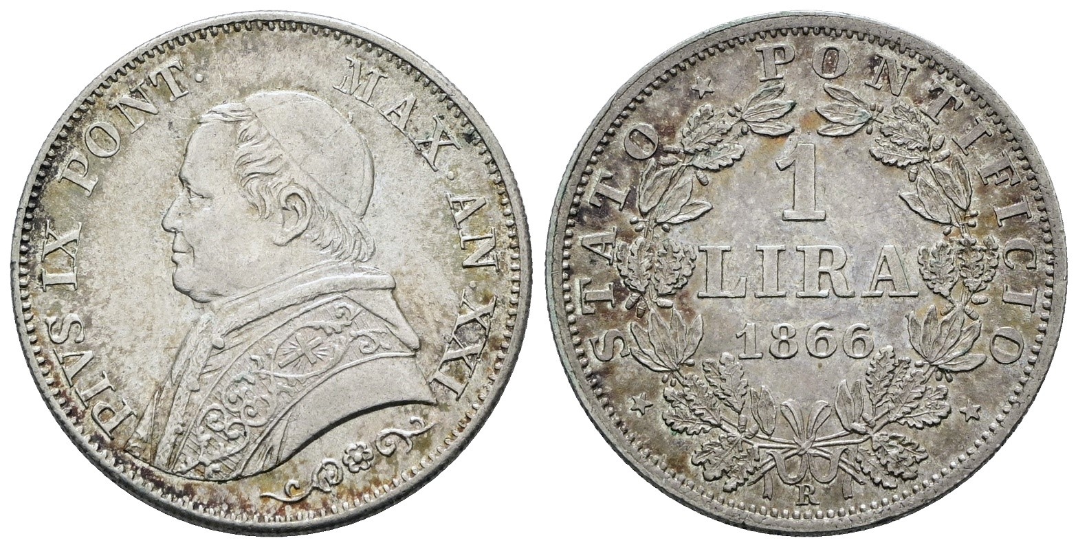 STATO PONTIFICIO. ROMA. Pio IX(1846-1870). Lira 1866 anno XXI, busto piccolo. Ag; 5gr; Gig.295; NC; SPL+