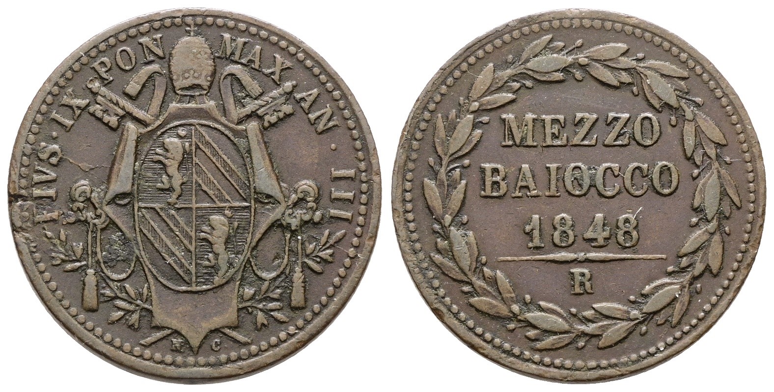 STATO PONTIFICIO. ROMA. Pio IX(1846-1870). Mezzo baiocco 1848 anno III. Cu; 5gr; Gig.239; Raro; BB+