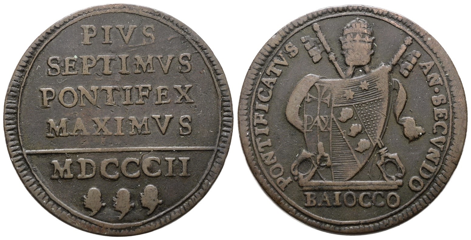 STATO PONTIFICIO. ROMA. Pio VII (1800-1823). Baiocco 1802. Cu; 12gr; Gig.54; BB