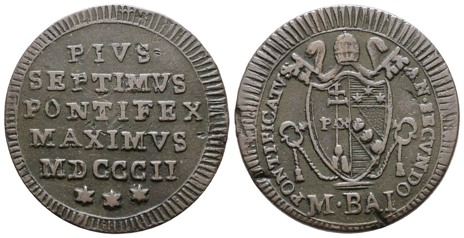STATO PONTIFICIO. ROMA. Pio VII (1800-1823). Mezzo baiocco 1802. Cu; 6gr; Gig.62; BB+