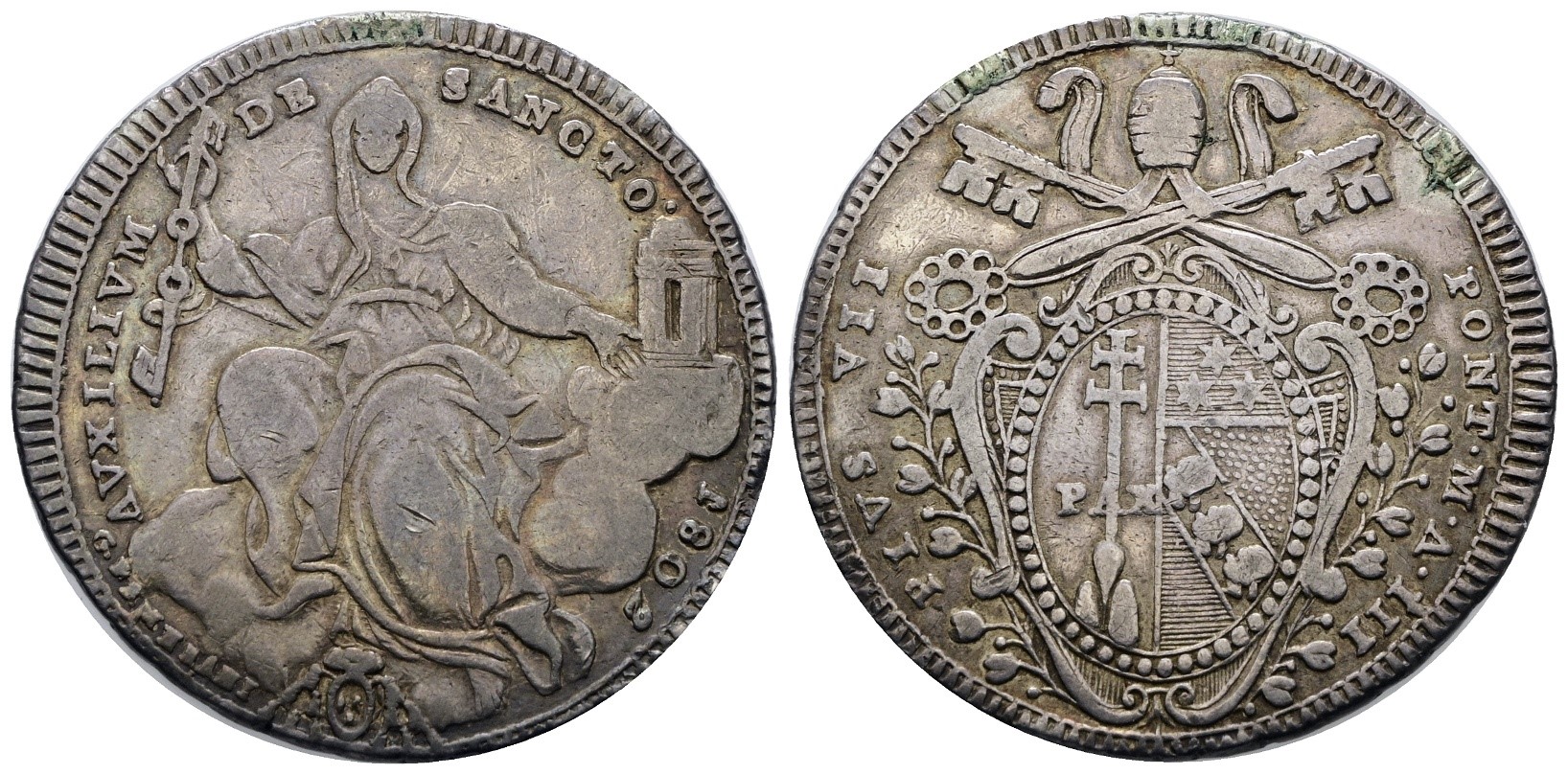 STATO PONTIFICIO. ROMA. Pio VII (1800-1823). Mezzo scudo 1802 A.III. Ag; 13,25gr; Gig.34; RR; BB; Ex mount