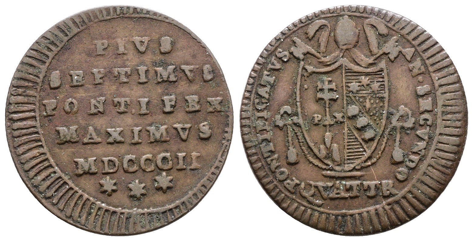 STATO PONTIFICIO. ROMA. Pio VII (1800-1823). Quattrino 1802. Cu; 2,4gr; Gig.70; BB+