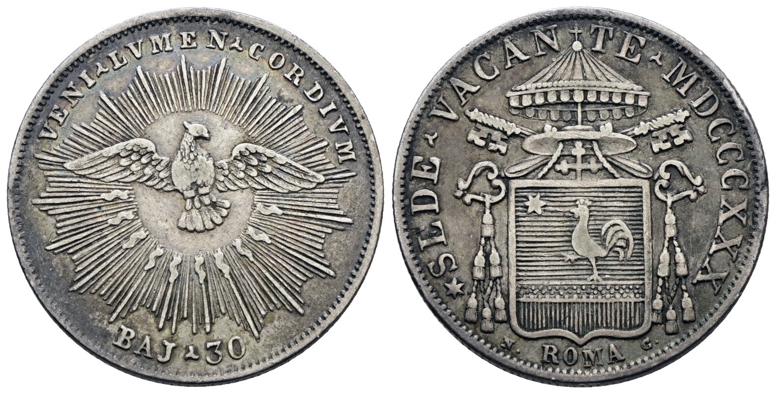 STATO PONTIFICIO. ROMA. Sede Vacante (1830-1831). Testone da 30 baiocchi 1830. Ag; 7,93gr; Raro; Gig.3; BB+