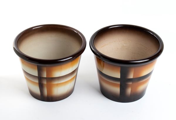 Lot of two cachepots decorated with airbrush