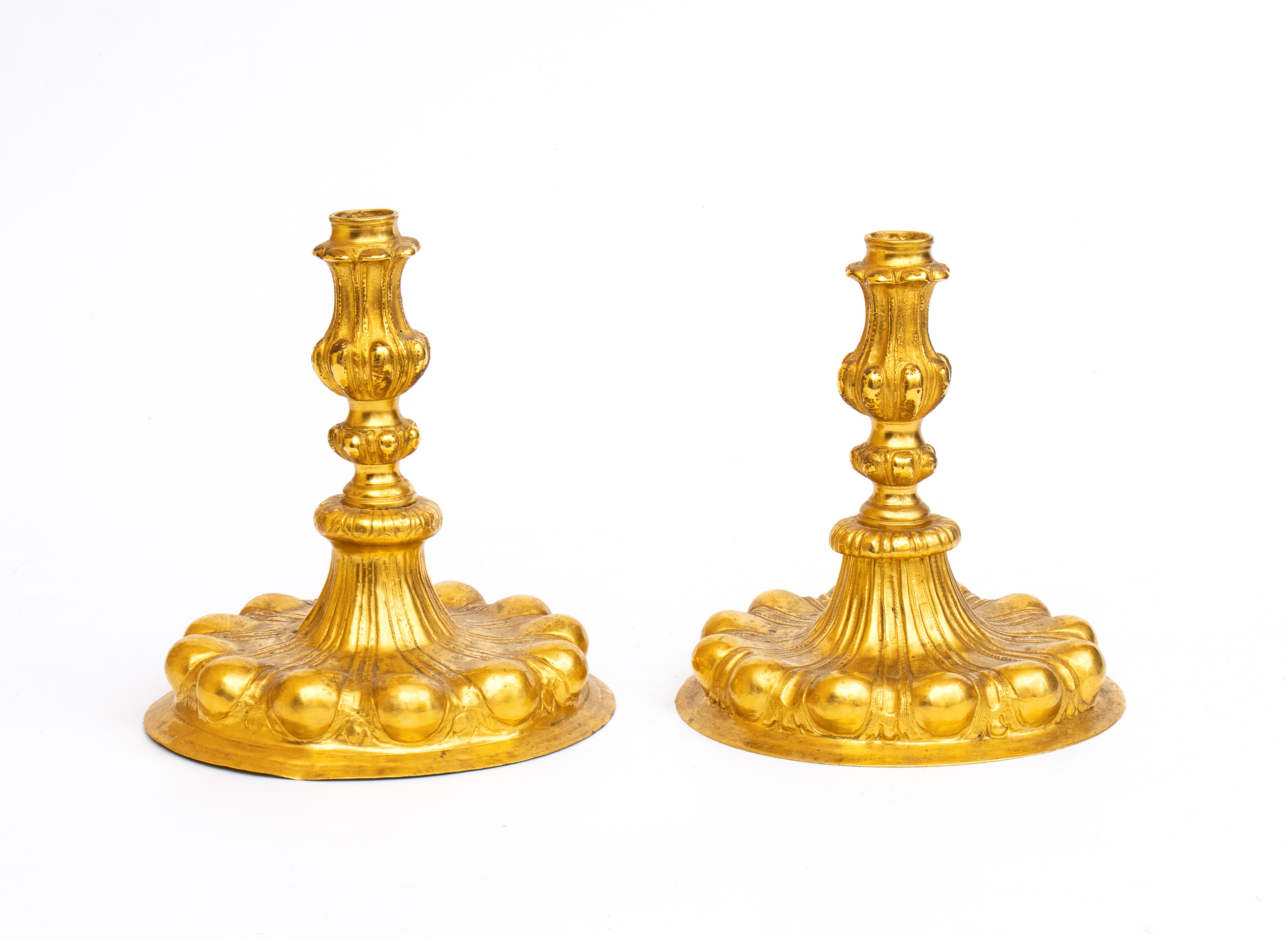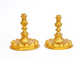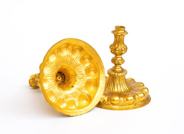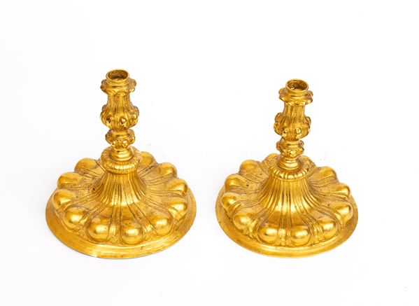Pair of German candlesticks in gilded metal, Germany, 19th century