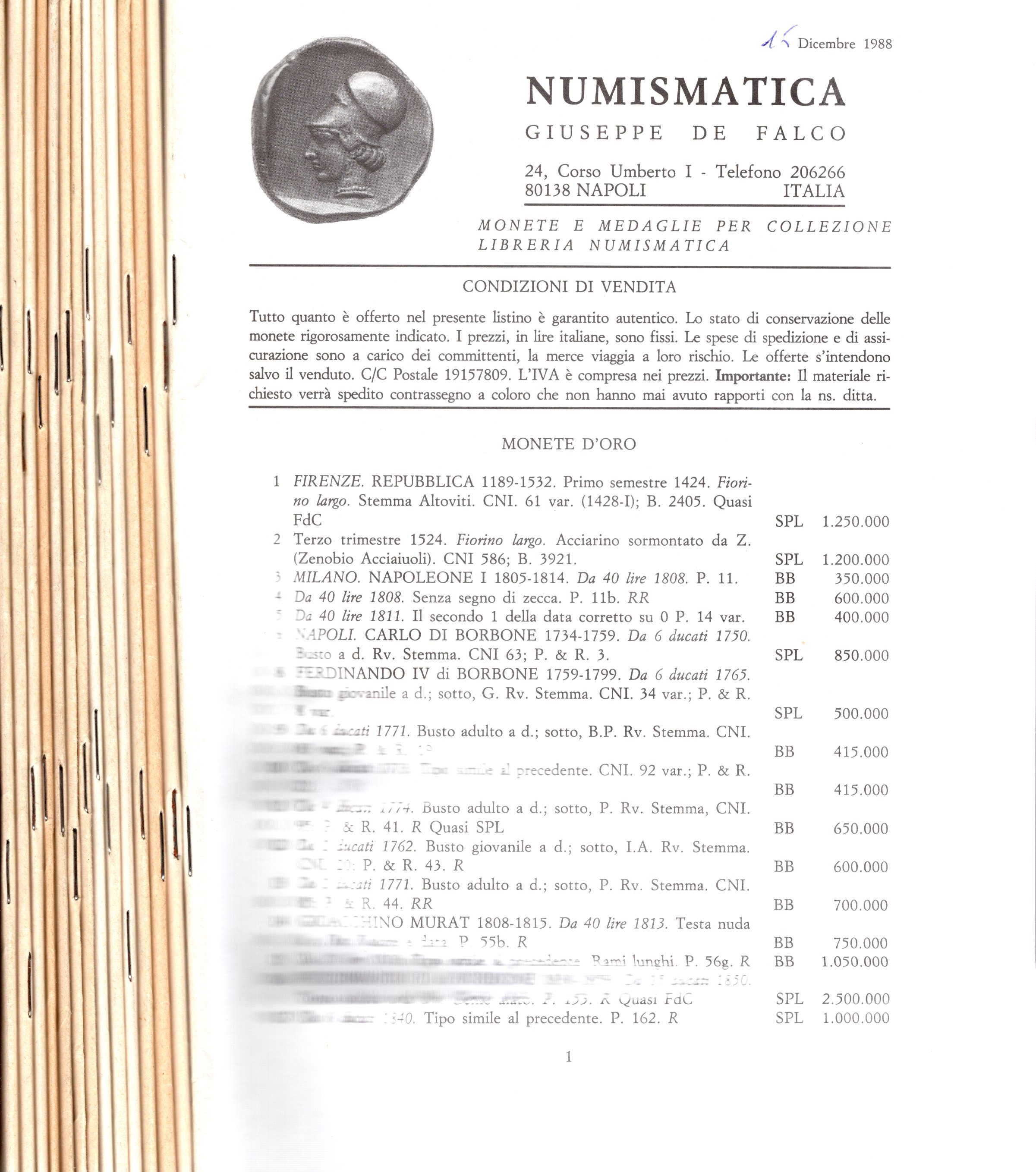 DE FALCO G. - 11 listini a prezzo fisso( nuova serie) dal n. 1 Maggio, 1975 al n. 15 Dicembre, 1988. alcuni con tavole. brossure editoriali, buono stato, molto rari.
