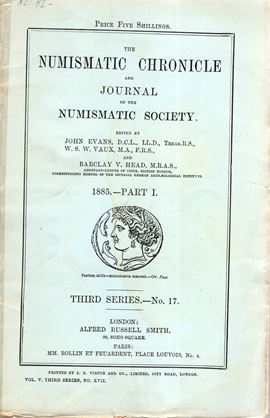 NUMISMATIC CHRONICLE - London, Part I - 1885. pp 80, plates 2. Legatura ed. sciupata , interno ottimo stato, raro