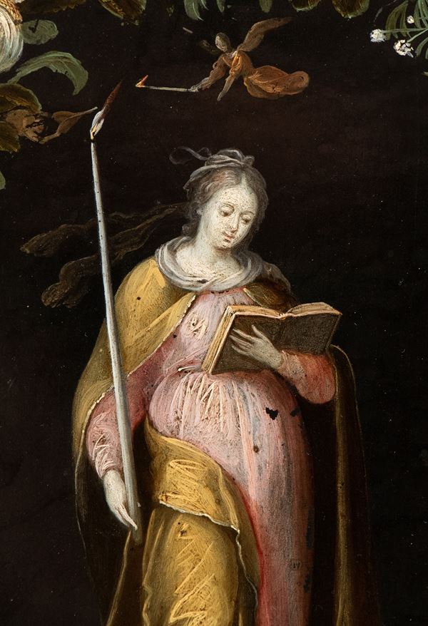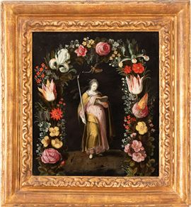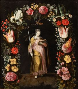 Allegory of Wisdom within a garland of flowers