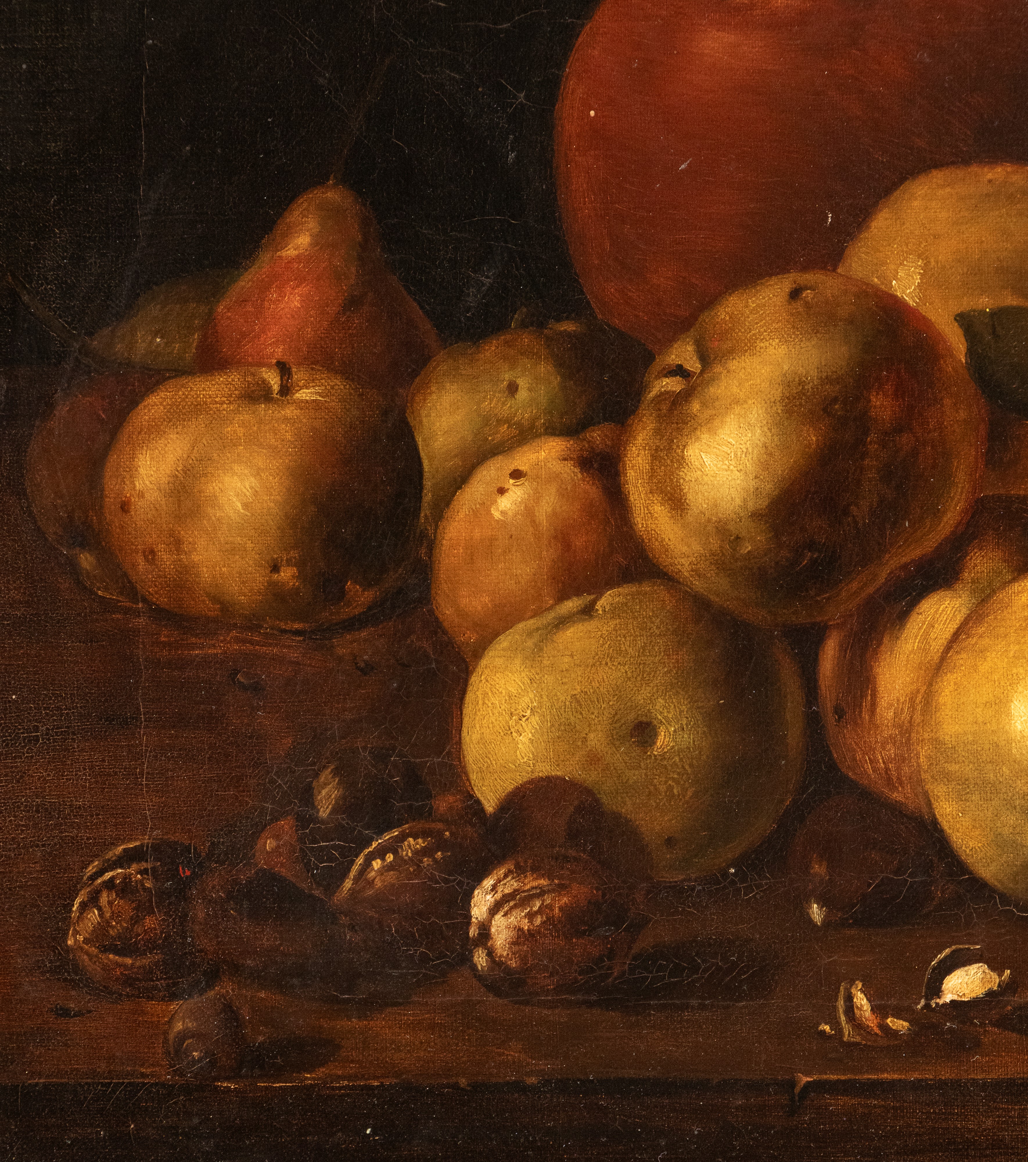 Still Life with apples, nuts, boxes of sweets and vessels, XIX secolo