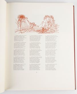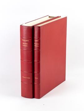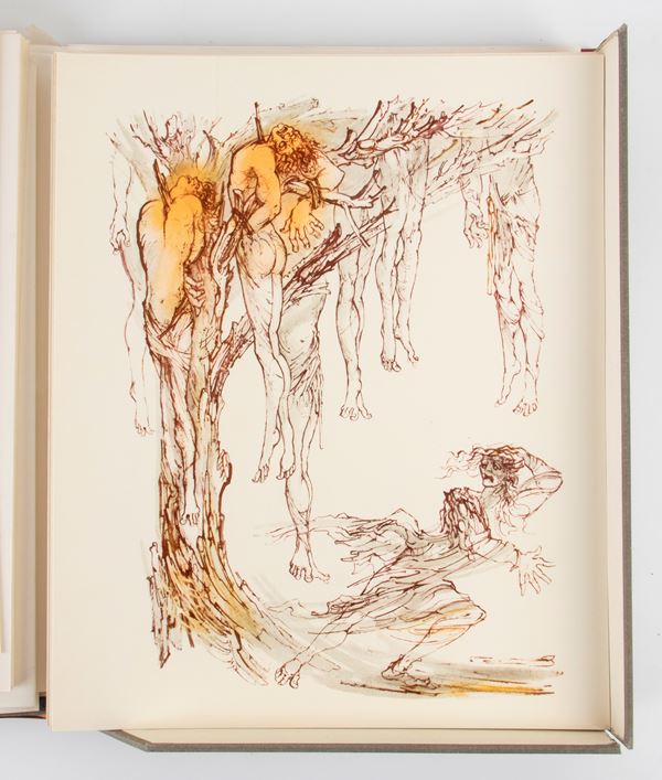 Le 158 grandi tavole a colori, stampate litograficamente, di Fabrizio Clerici sono raccolte sciolte in un contenitore delle stesse caratteristiche del primo volume. Lastre biffate dall'Autore dopo la stampa Stampa della Stamperia Fantoni, Venezia. Tavole stampate in litografia da 8 a 11 toni negli stabilimenti Luigi Fattorini, Milano e Giovanni Trimbali, Rho. Carta appositamente fabbricata dalla Cartiera Ventura, Cernobbio. La legatura è di Giovanni De Stefanis e della Torriani. Folio (cm 43x34). pp. 348.Edizione originale di 350 es. numerati. La copia è la n. 29. Due volumi in folio massimo legati in pelle con titolo in oro al dorso.