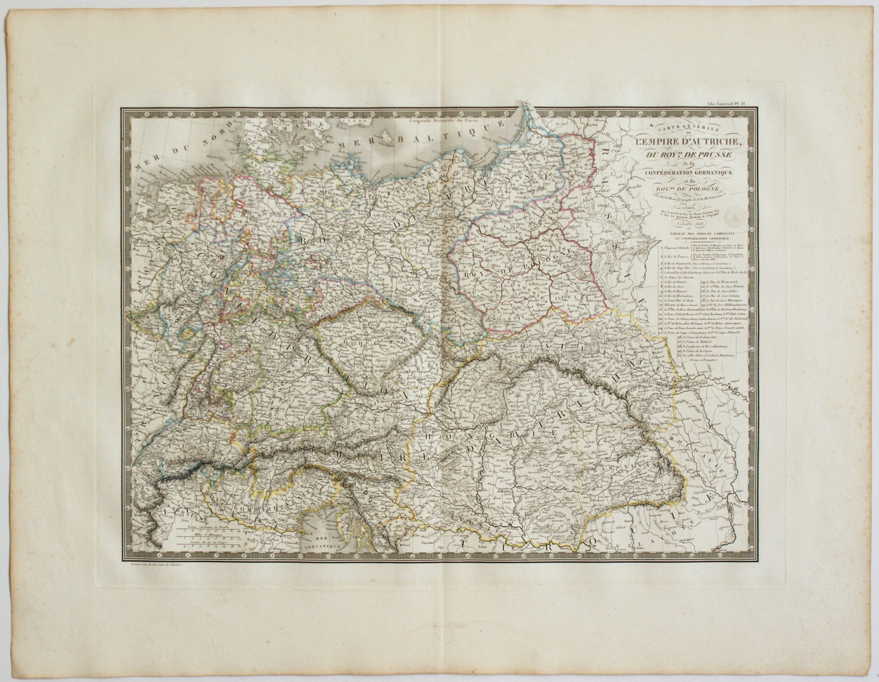 [Europa - Austria - Prussia - Polonia] Carte generale de l'Empire d'Autriche, du Roy.me de Prusse de la Confederation Germanique et du Roy.me de Pologne, 1821