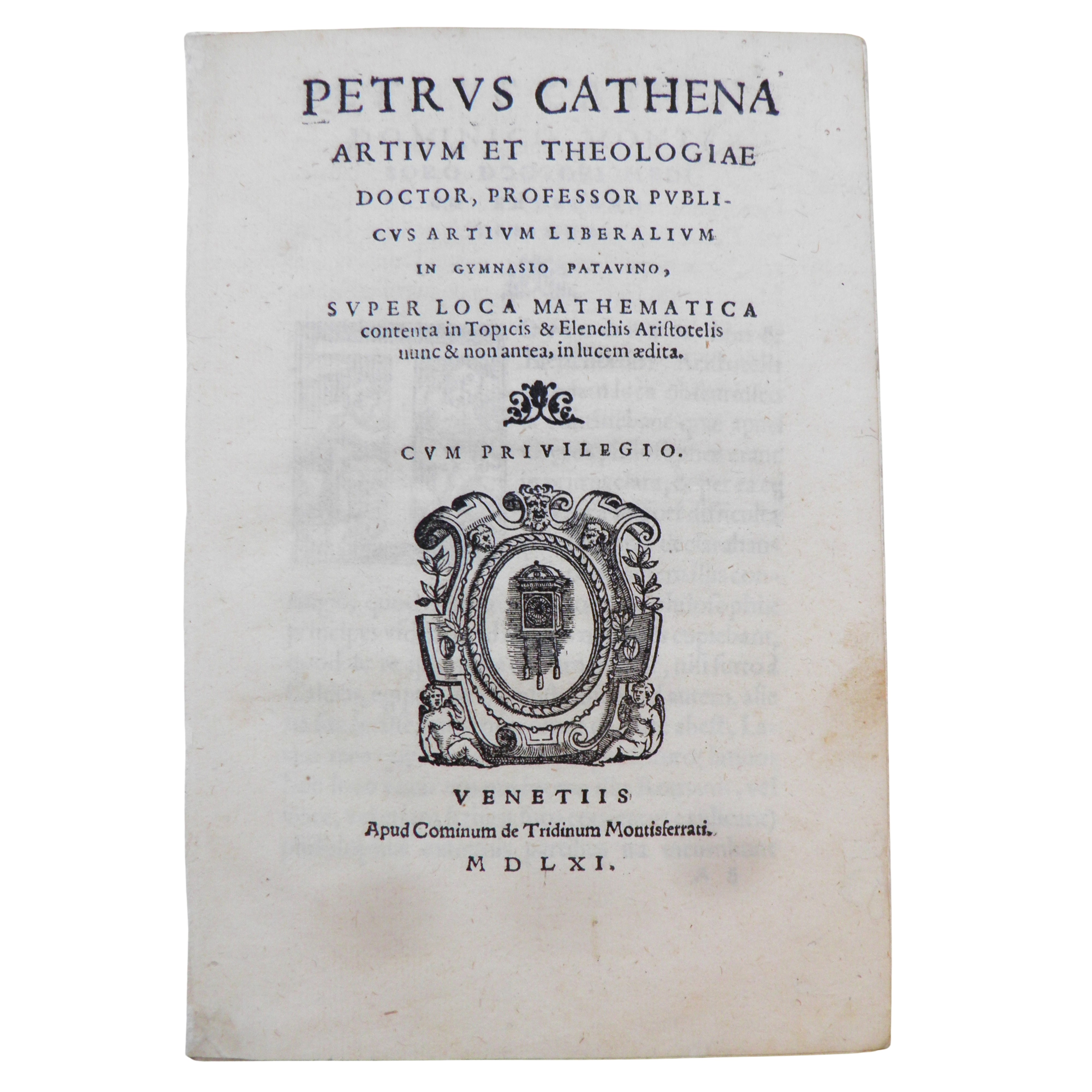 CATENA, PIETRO. Petrus Cathena artium et theologiae doctor, professor publicus artium liberalium in gymnasio patavino, Super Loca Mathematica contenta in Topicis & Elenchis Aristotelis nunc & non antea, in lucem aedita, Venetiis, Cominum de Tridinum Montisserati, 1561