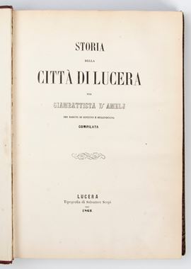 D’AMELJ Giambattista. Storia della città di Lucera dei baroni di Binetto e Melendugno, Lucera, Scepi, 1861