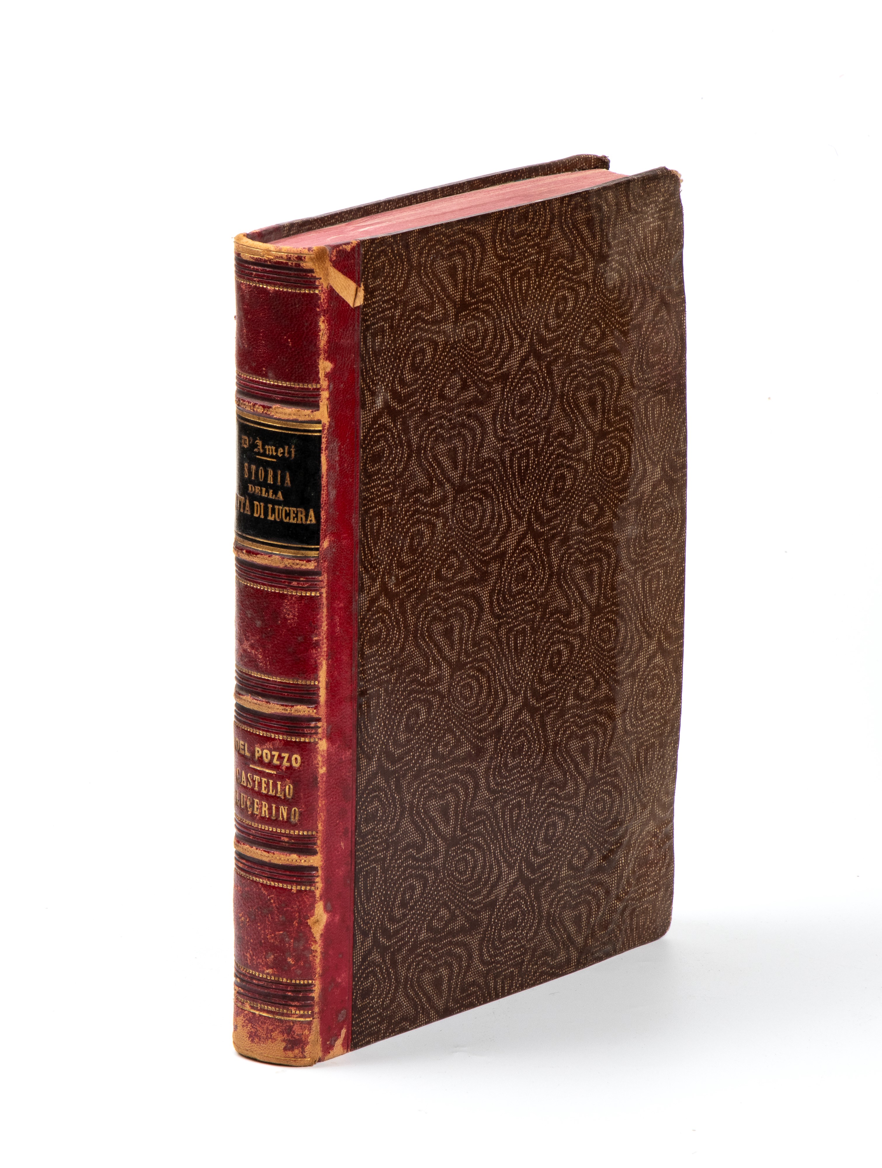 In 8° grande, pp. 429+11 carte di tavole compresa una piantina della città. Unito con: Il castello Lucerino. Memoria di Vincenzo Del Pozzo, pp. 24 con lettera autografa diretta all’autore. Legatura in mz pelle con titolo al dorso.