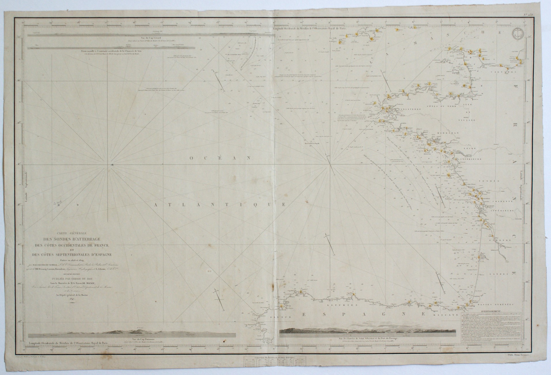 [Carte nautiche - Europa - Francia - Spagna] Carte générale des sondes d'alterrage des côtes occidentales de France et des côtes septentrionales d'Espagne, 1847