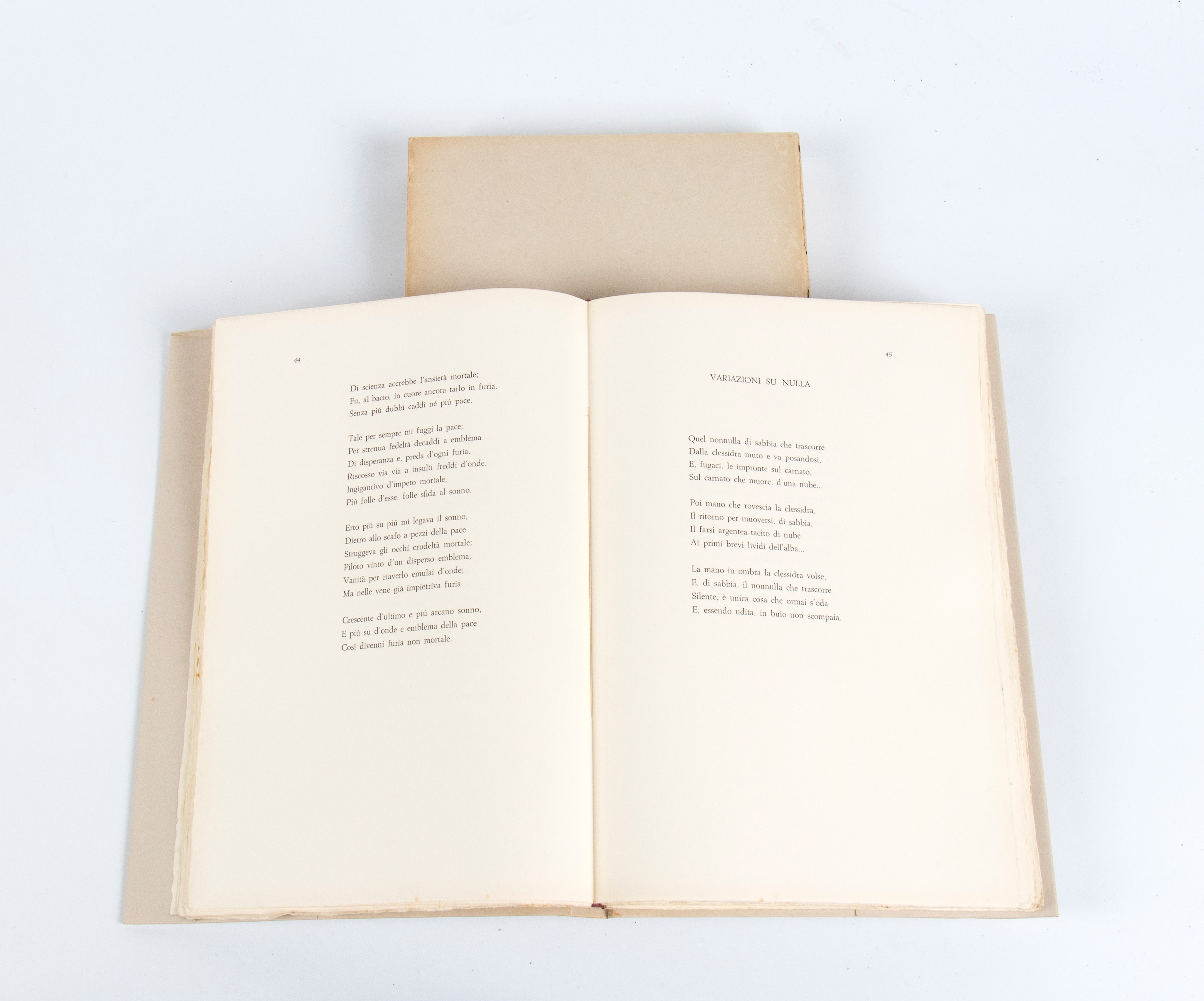 In 2°. Tiratura limitata di 250 esemplari, questo il n. 67 con un’acquaforte originale.