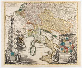 Acquaforte e bulino, 505 x 600 mm (foglio). Mappa dell'Impero austriaco, dall’Italia e Sicilia fino alla Polonia e Prussia.