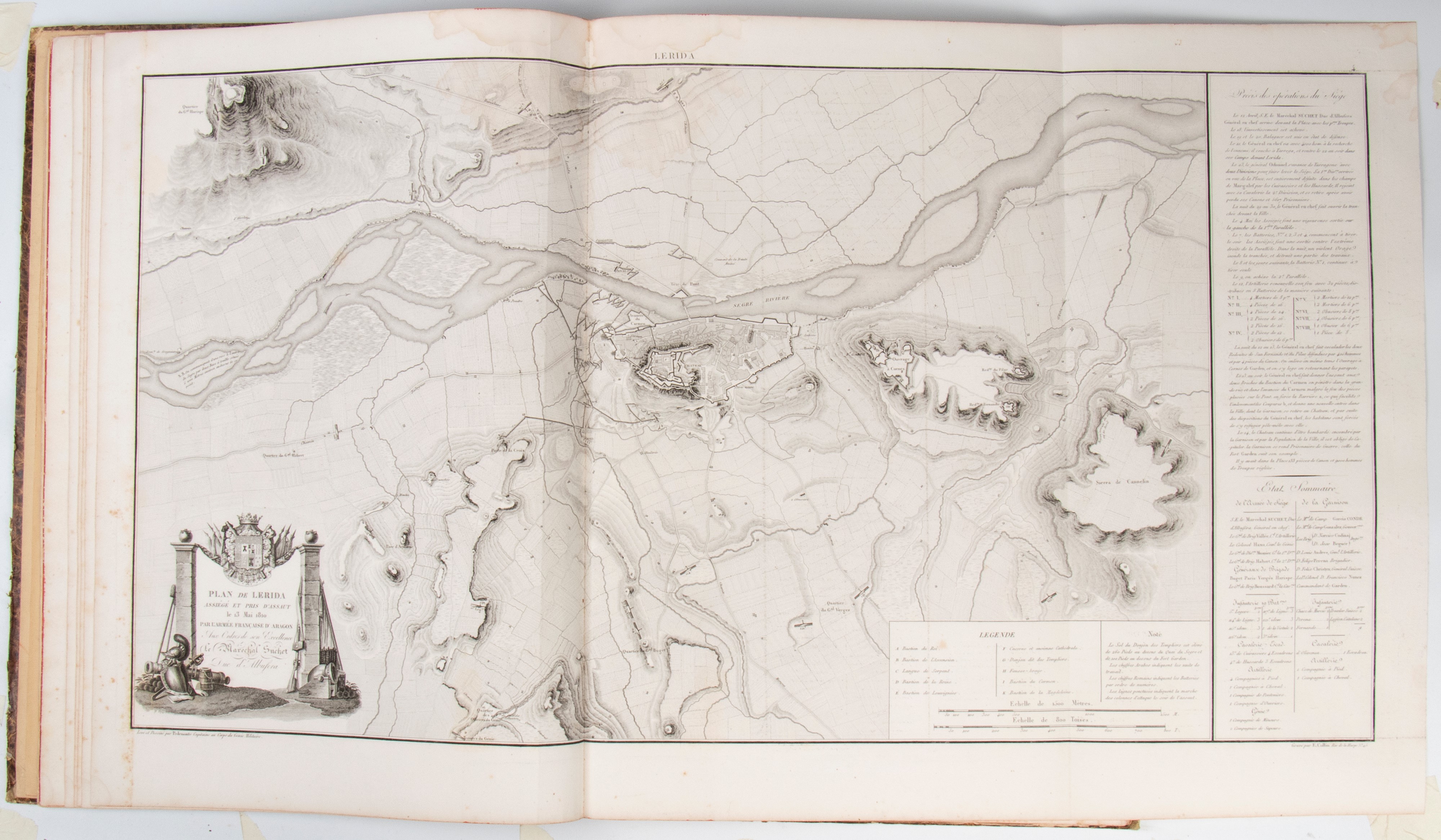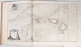 In folio massimo, edizione figurata da 15 grandi carte geografiche che interessano la campagna militare napoleonica in Spagna del Maresciallo Suchet e da una veduta del Colle d’Ordal. Legatura coeva in mz pelle con titoli al dorso. Macchia al frontespizio e nelle prime carte del volume.