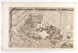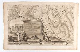 Inclusa: Urbis Ichnographiam a Leonardo Bufalino, 1748. Incisione settecentesca raffigurante la carta di Roma antica di Leonardo Bufalini, originariamente incisa nel 1551 e ridotta da Giambattista Nolli nel 1748.