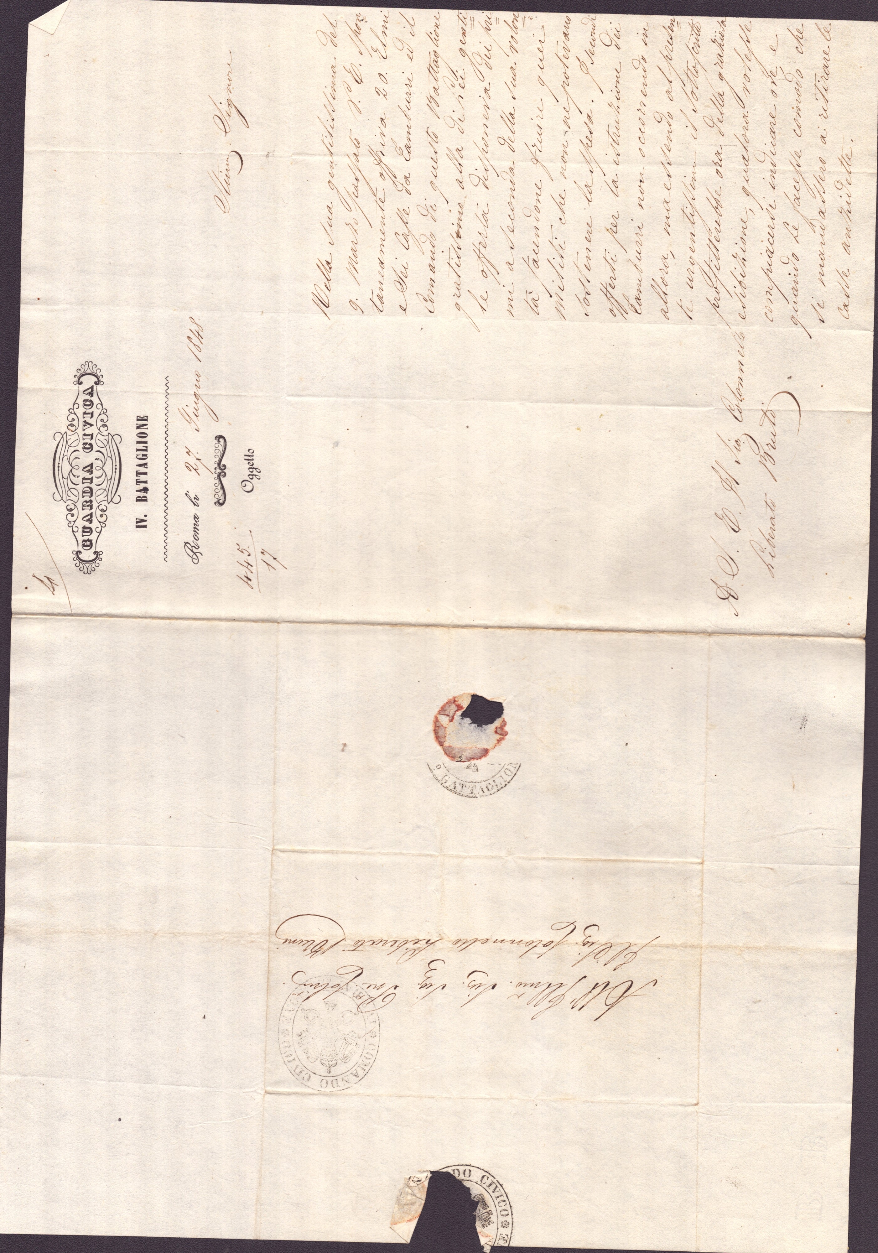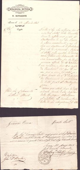 Composta da due numeri del giornale LβEpoca, datati 1 e 15 aprile 1848, e dalla testata Pallade, numero 192, 14 marzo 1848. La documentazione comprende inoltre, su carta intestata della Guardia Civica, piΓΉ di venti documenti tra lettere e fogli volanti, riguardanti argomenti militari dello Stato Pontificio nel 1848.