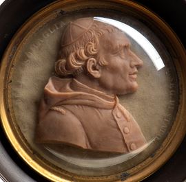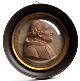 Ritratto in cera. Firmato: Gio. de Soresina Vidoni / fece in Roma l'an. 1823. Diam. 9 cm, con cornice: 14 cm