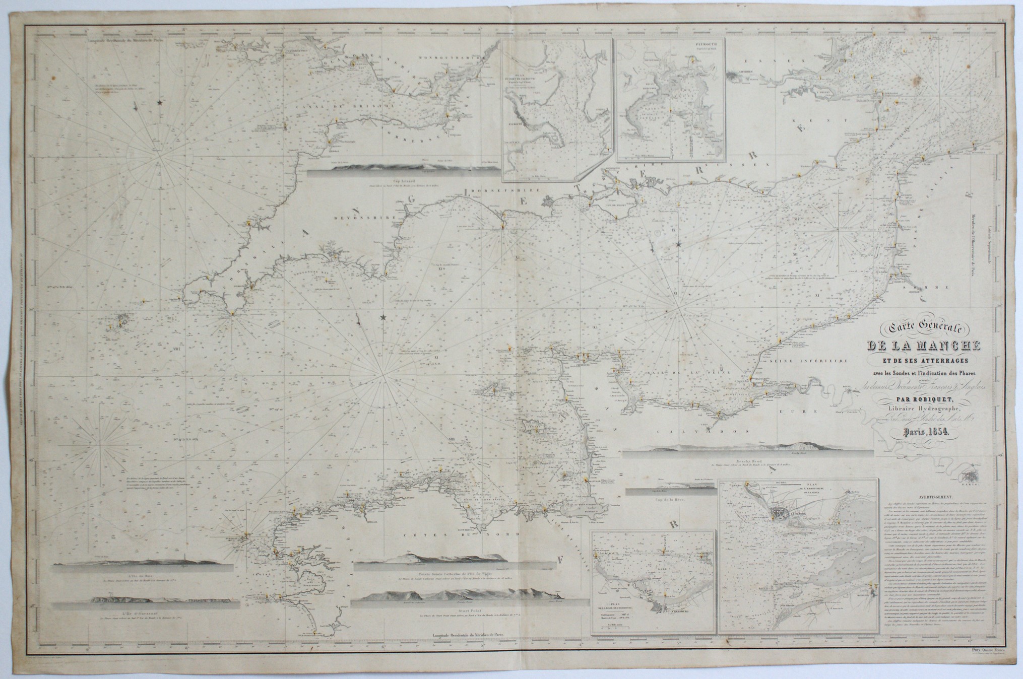 [Carte nautiche - Europa - La Manica] Carte générale de la Manche et de ses atterrages, 1854