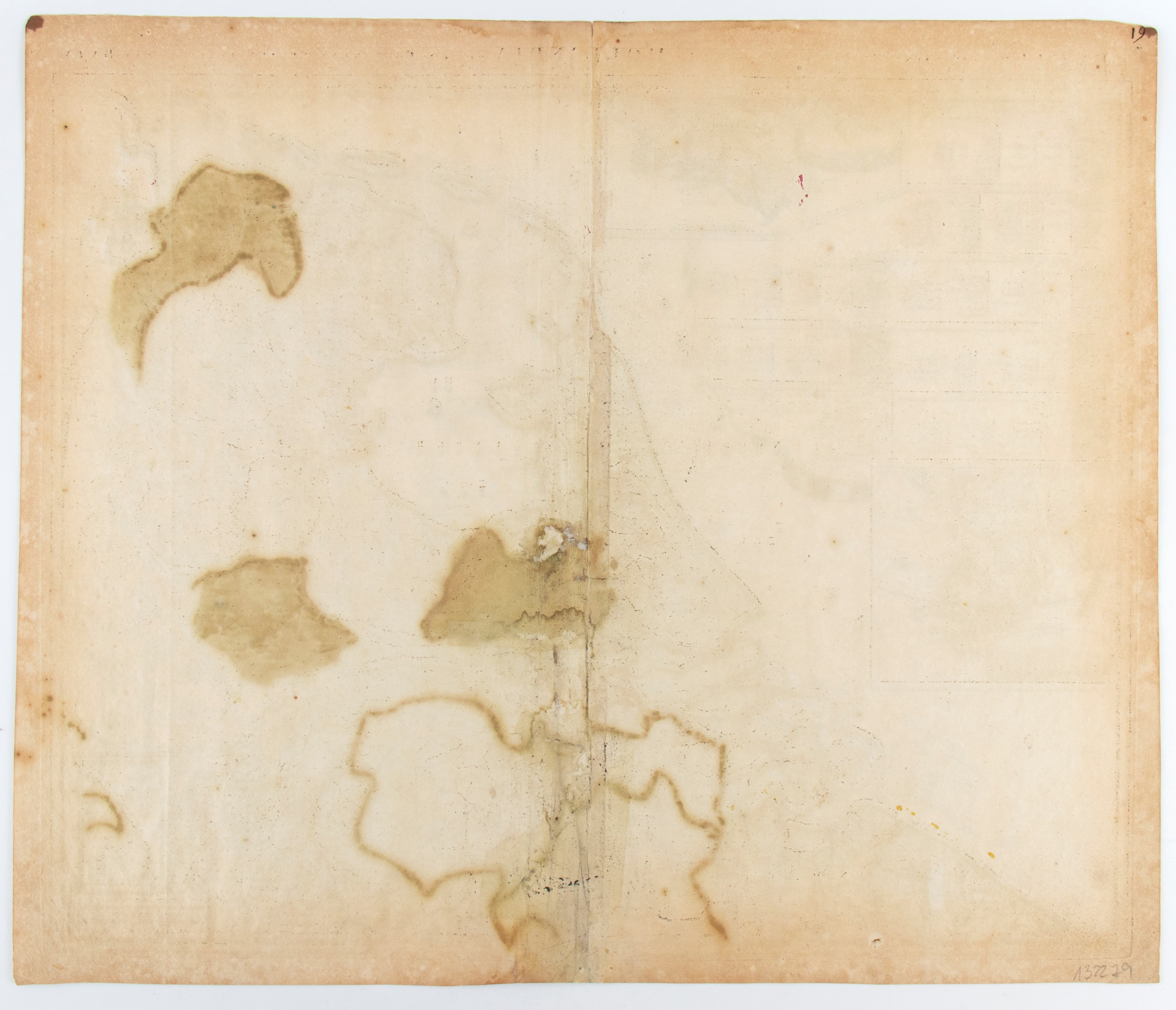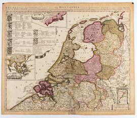 Mappa dell'Olanda. Bella impressione su carta vergata con filigrana. Parzialmente colorata. Consueta piega editoriale, margini preservati. In buono stato di conservazione salvo leggere bruniture e delle macchie nella parte centrale.
