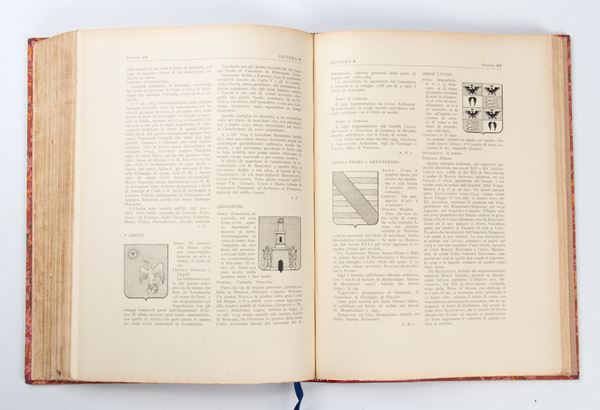 6 volumi in 4° piccolo legati in mz pelle con titoli al dorso. Dedica dell’autore al frontespizio. Illustrazioni nel testo e tavole con blasoni a colori.