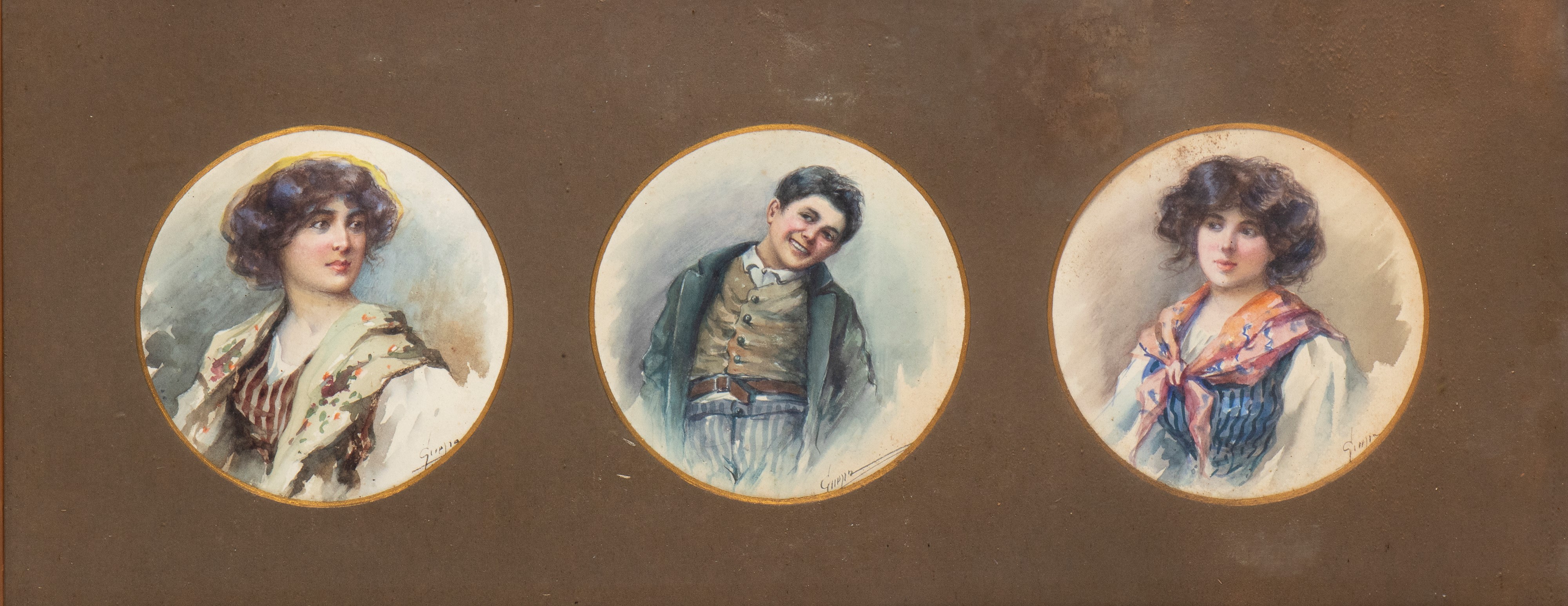 Lot composed by a couple of three watercolours