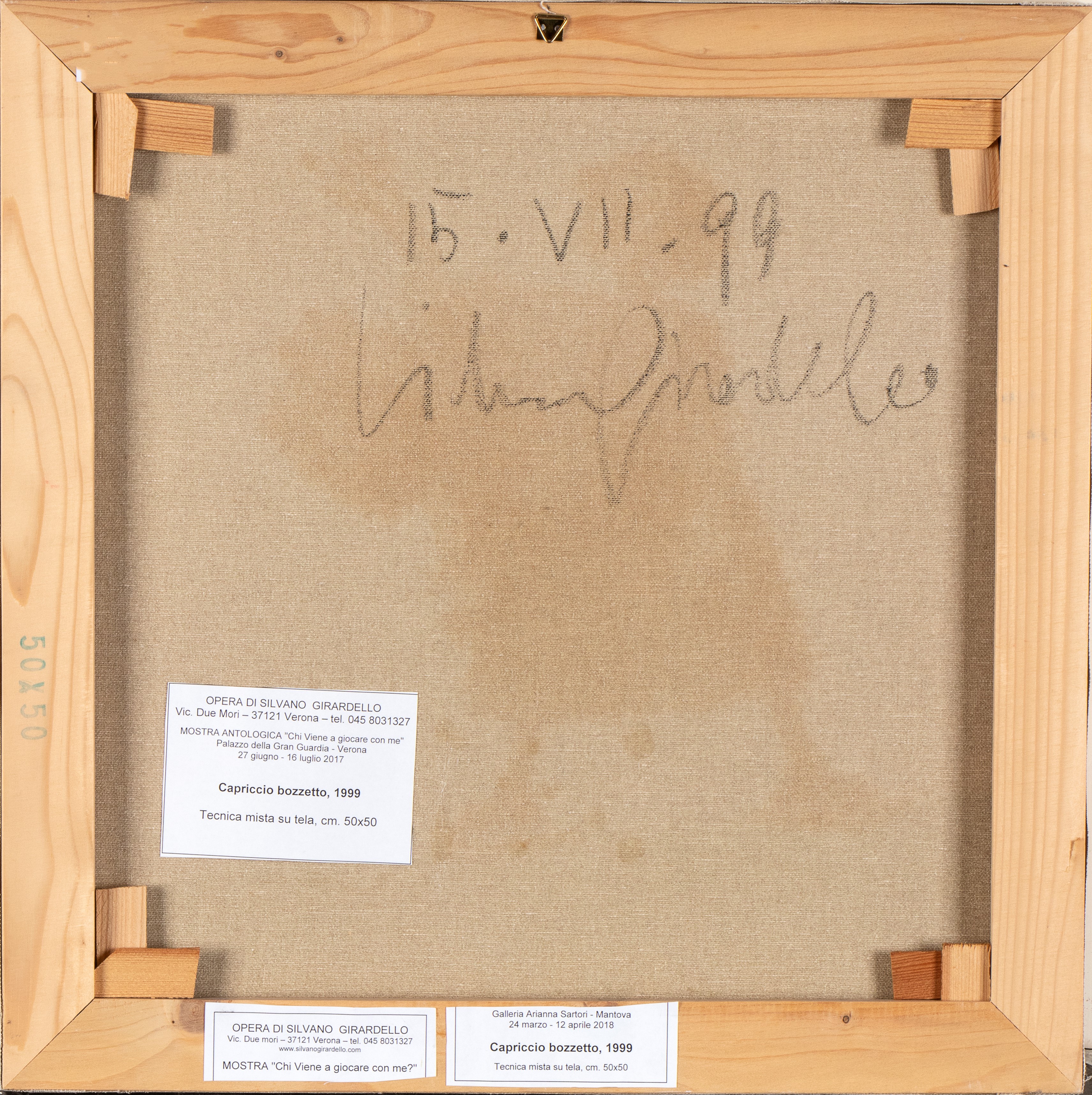 Signed and dated lower centre: Silvano Girardello, 1999. On the back signed, dated and label from Galleria Arianna Sartori in Mantova