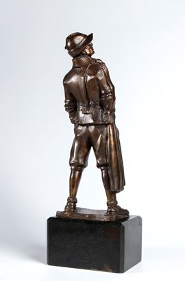 Opera dello scultore Baroni. Bel bronzo raffigurante un ufficiale degli alpini in giacca a vento e sciarpa su base marmorea. Molto bello, in ottimo stato.