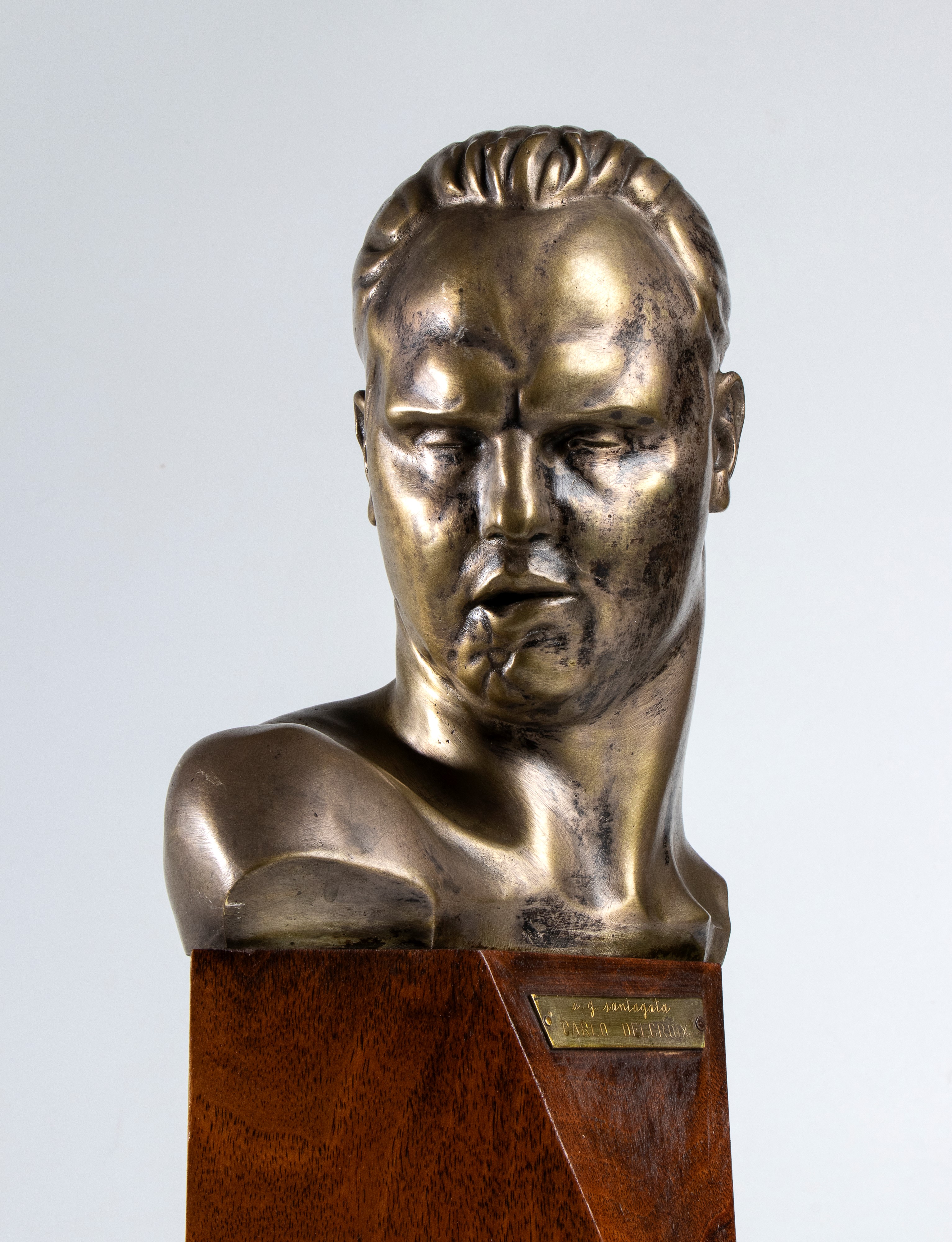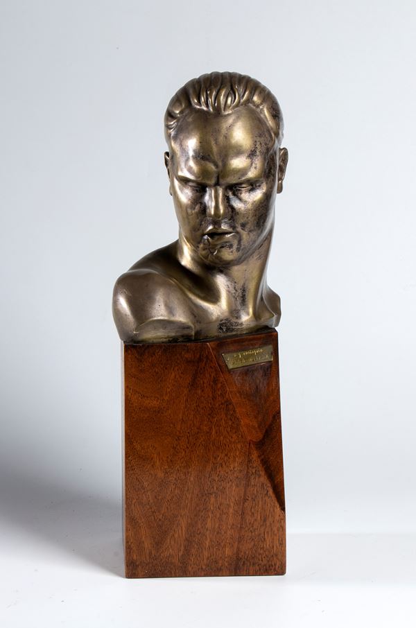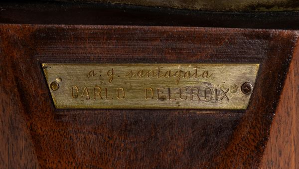 Opera iconica dello scultore Antonio Giuseppe Santagata. Fusione di bronzo argentata montata su base lignea con targhetta incisa riportante la firma dell'autore e il nome dell'eroe ritratto. Realizzato in occasione del ventennale della vittoria dallo scultore, il busto era destinato ad arredare tutti gli uffici di presidenza dell'ANMIG (Associazione Nazionale Mutilati e Invalidi di Guerra). Commissionato probabilmente dallo stesso Del Croix, questo busto su elegante base d'acero, era destinato ad arredare tutte le case madri d'Italia. Carlo Del Croix, giovane tenente dei bersaglieri, venne irrimediabilmente mutilato dallo scoppio di una bomba e dedicò il resto della sua vita al bene e alla protezione degli oltre 900mila mutilati della Grande Guerra.