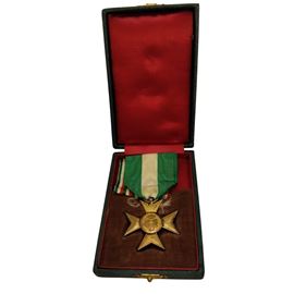 Croce di Anzianità per venticinque anni di servizio nel Regio Esercito , in metallo dorato con nastro originale, conservata in astuccio