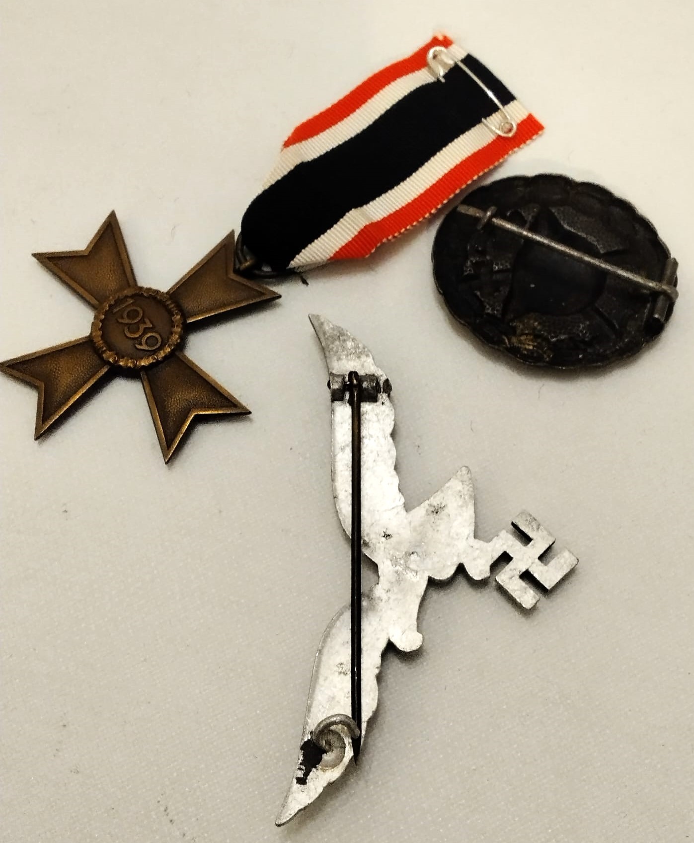 Lotto composto da KVK per meriti civili, un distintivo di ferita 1GM e di un aquila per tenuta estiva della Luftwaffe, prima metà XX sec.