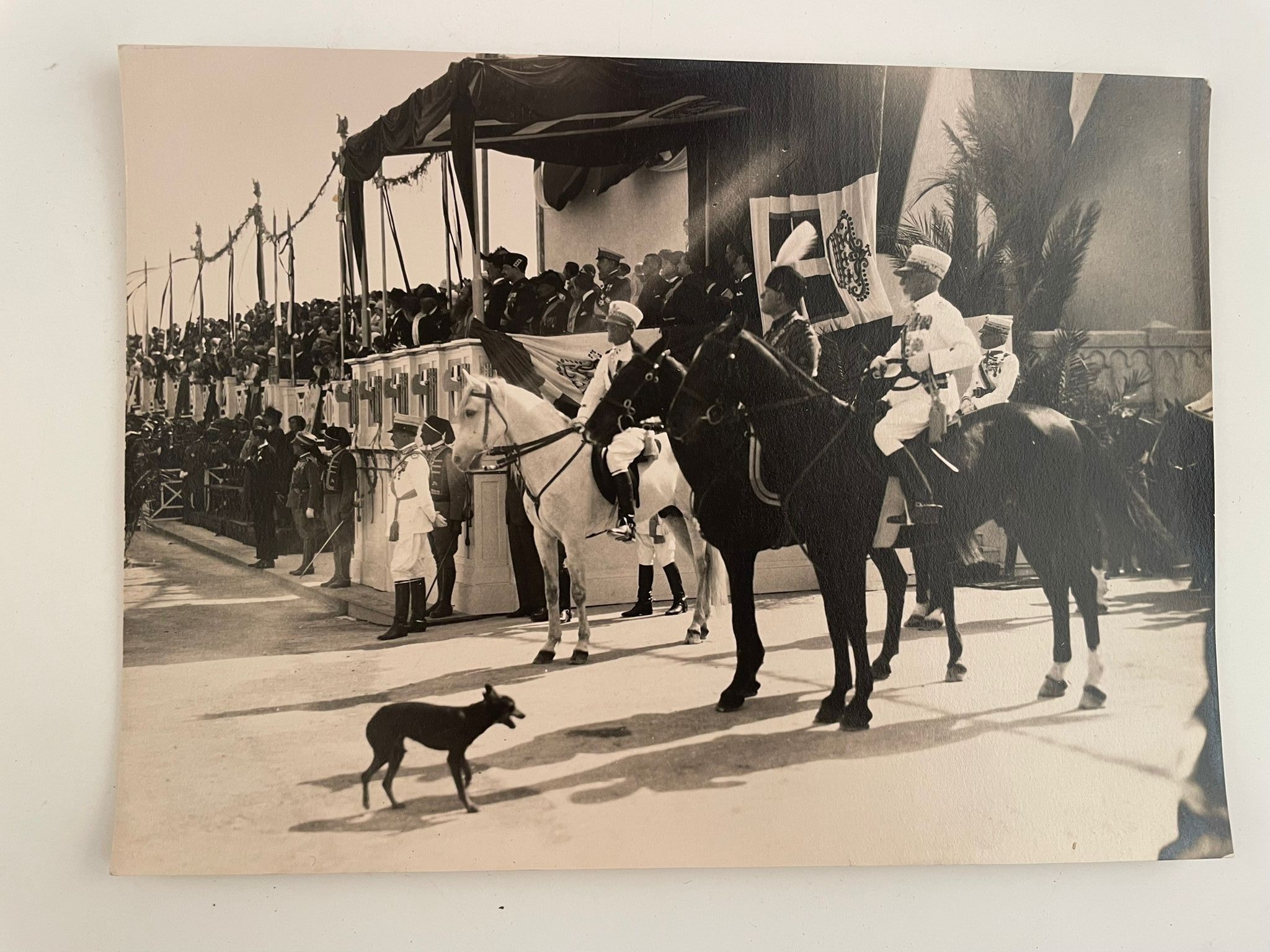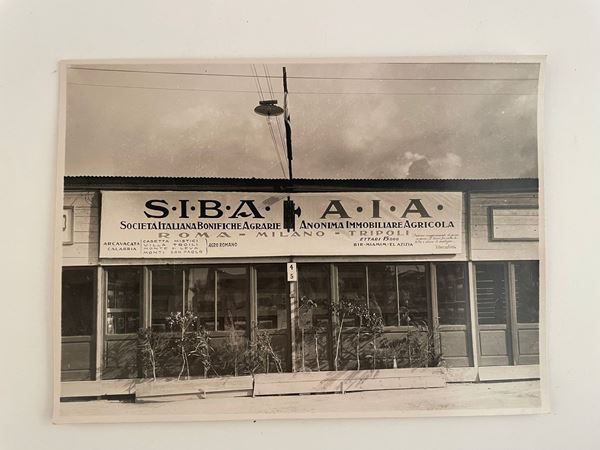Lotto di otto fotografie in b/N di vario formato aventi per soggetto principale Benito Mussolini durante una visita alla S.I.B.A.A.I.A società agricola di tripoli, buono stato