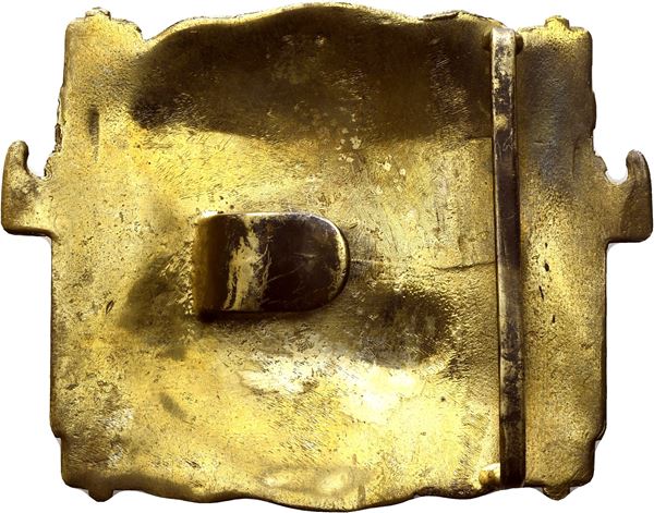 Bellissima fibbia in bronzo per ufficiali della MVSN, tipo di lusso di fine anni trenta. Al verso passante e gancio; molto bella e inusuale.