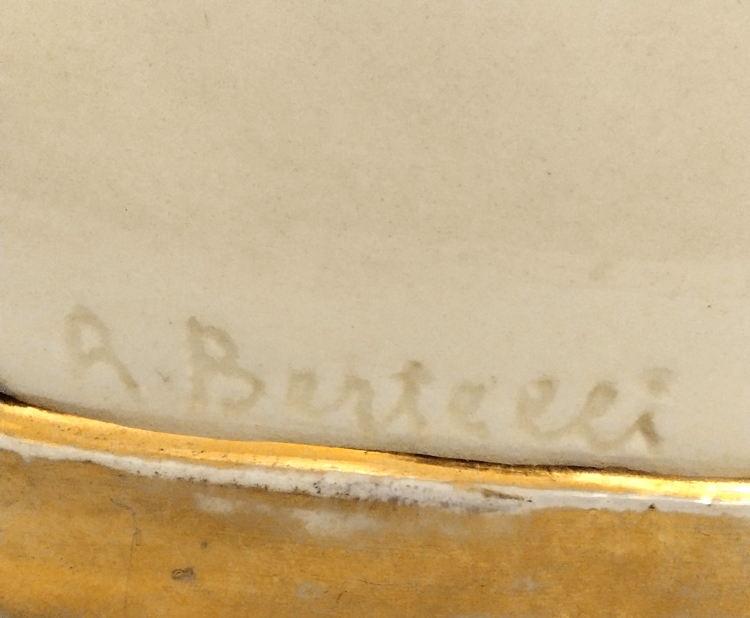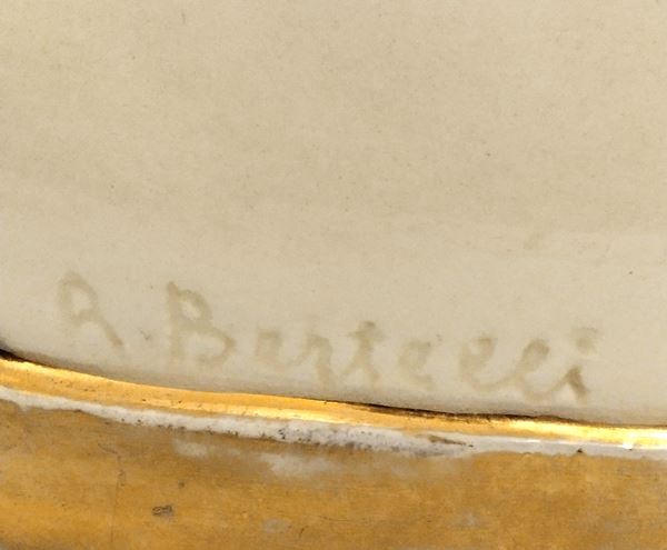 Piccolo busto in porcellana bianca e oro, firmata Bertelli al verso.