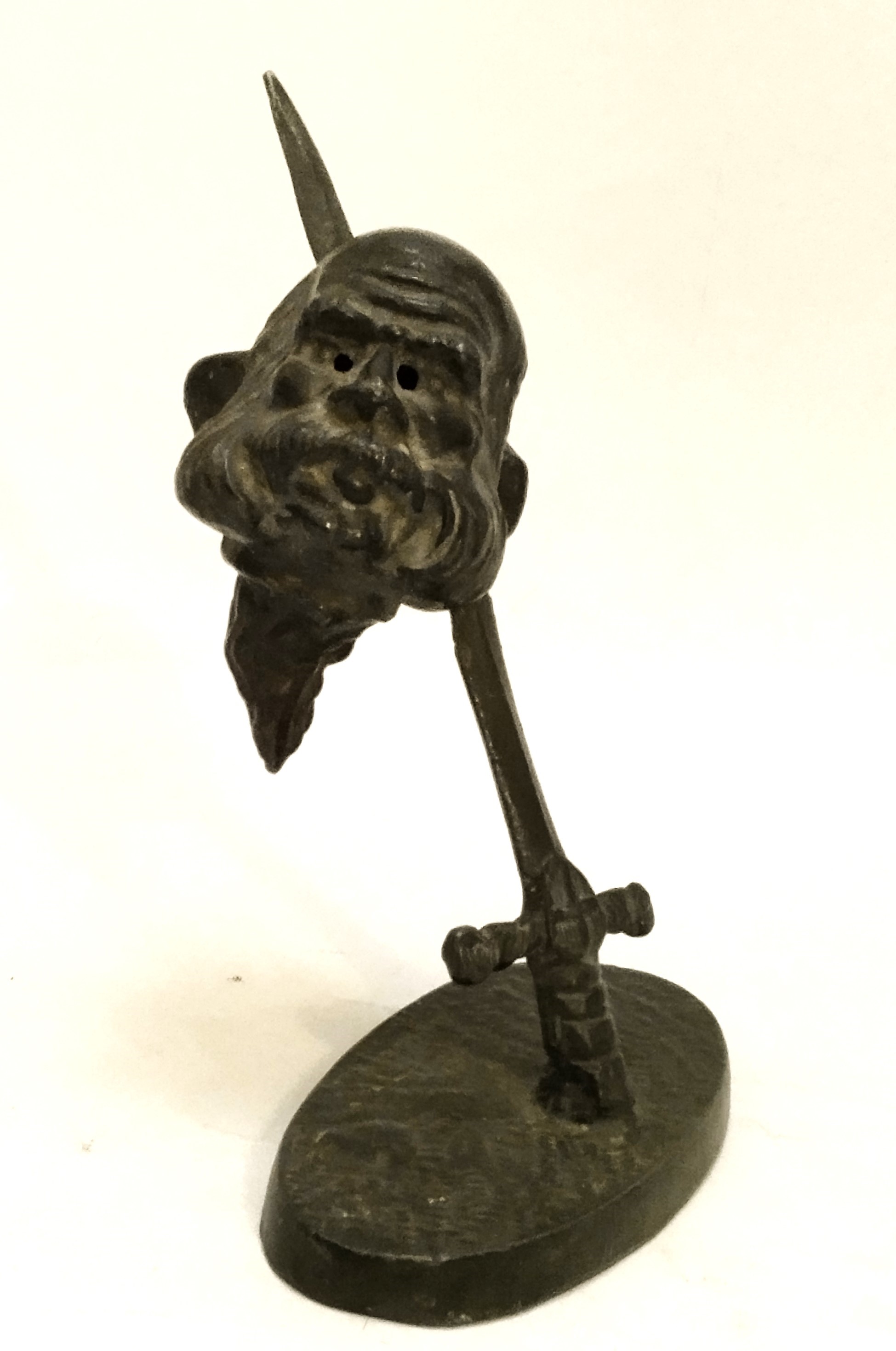 Piccolo fermacarte in bronzo con spada Sabauda che trafigge la testa mozzata dell'Imperatore. In ottime condizioni.