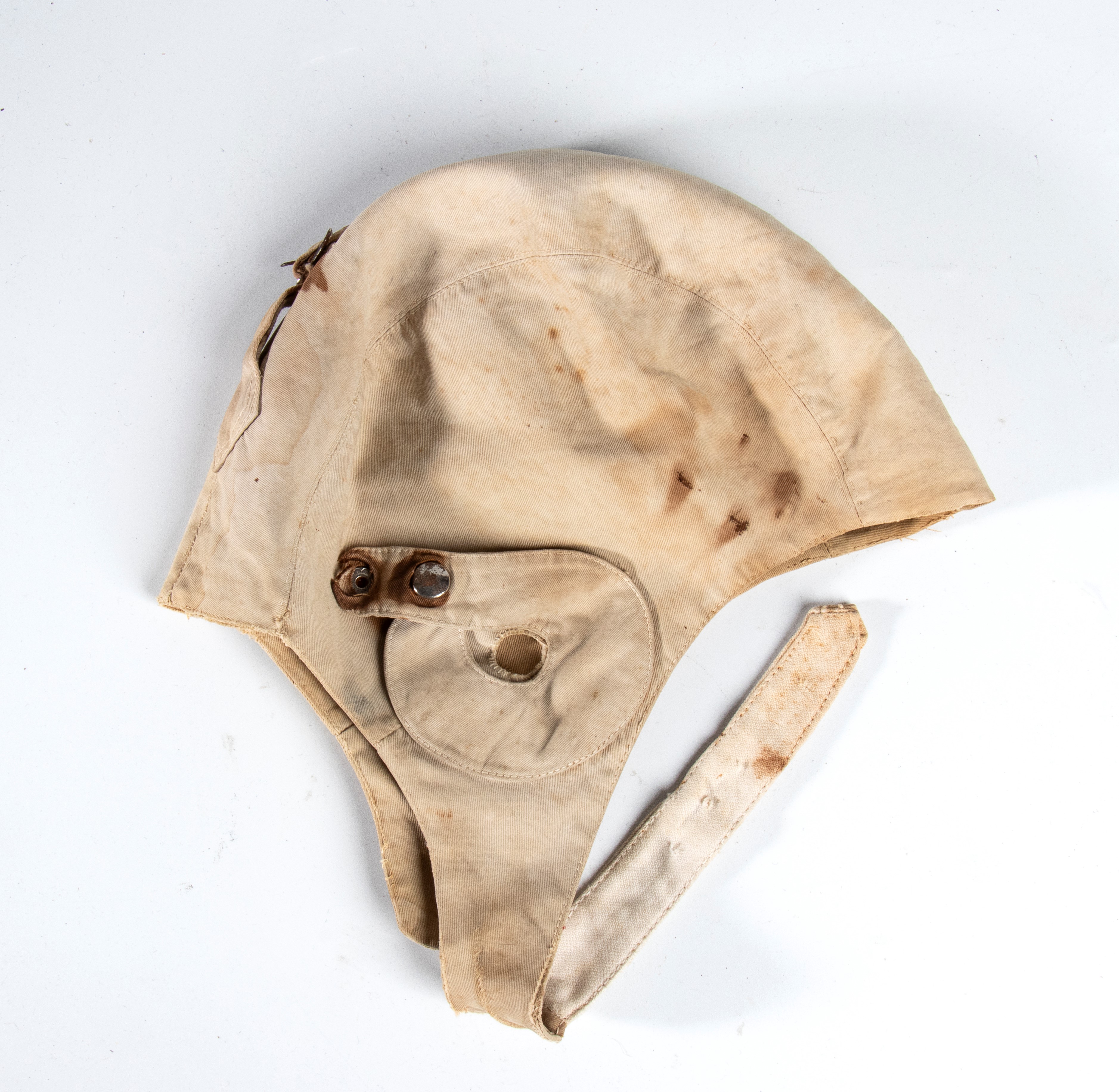 Confezionata in tela di cotone bianco, segni di usura e ruggine alle parti metalliche. Rara.
