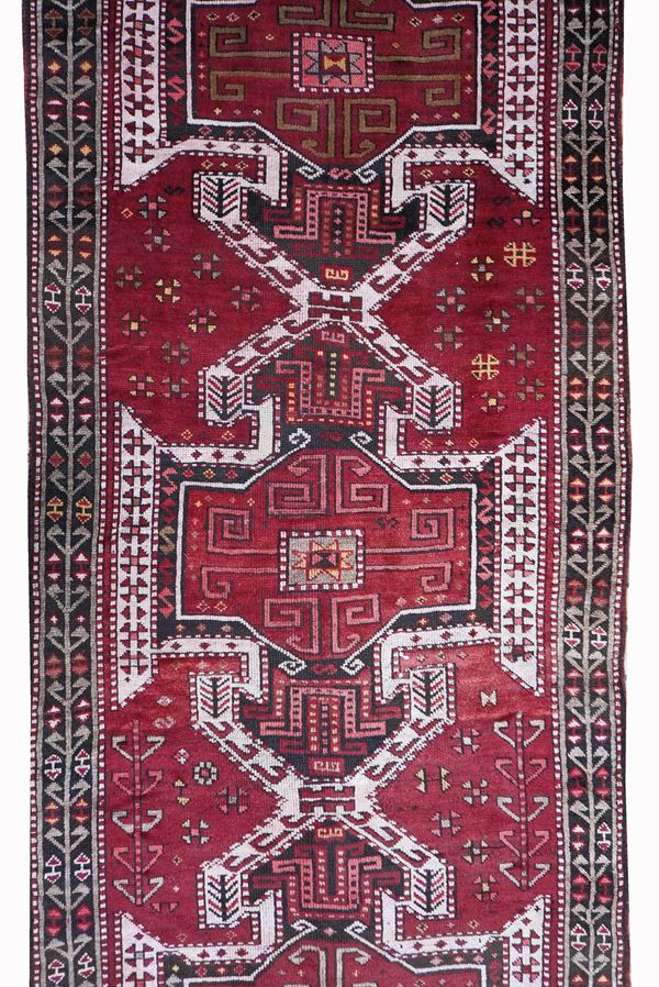 A Kazak long rug with shield designs, early 20th ct.