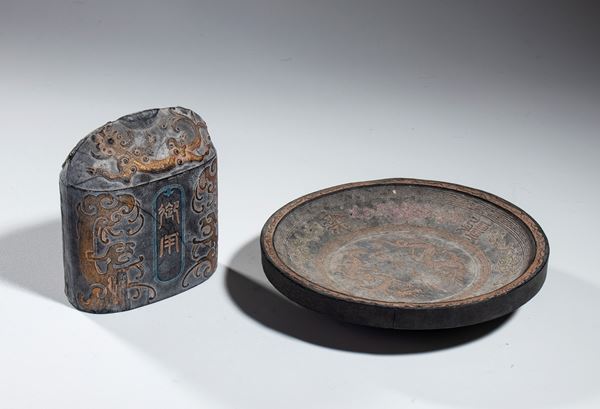 1 stone and 1 Qianlong style ink pot