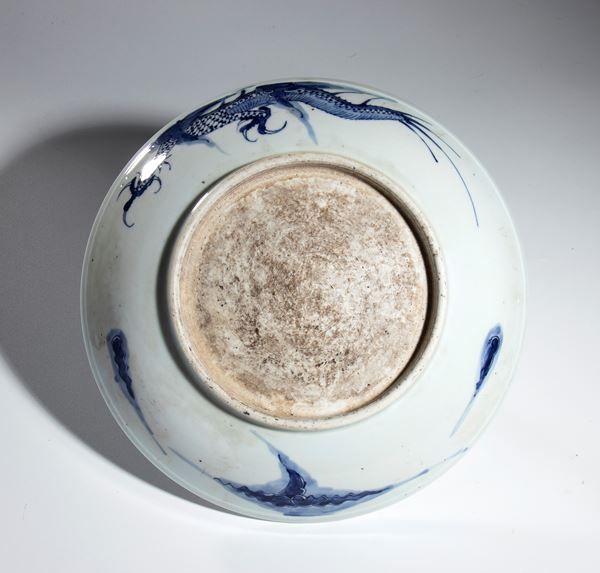 Blue and white porcelain plate with dragon, China, 20th century