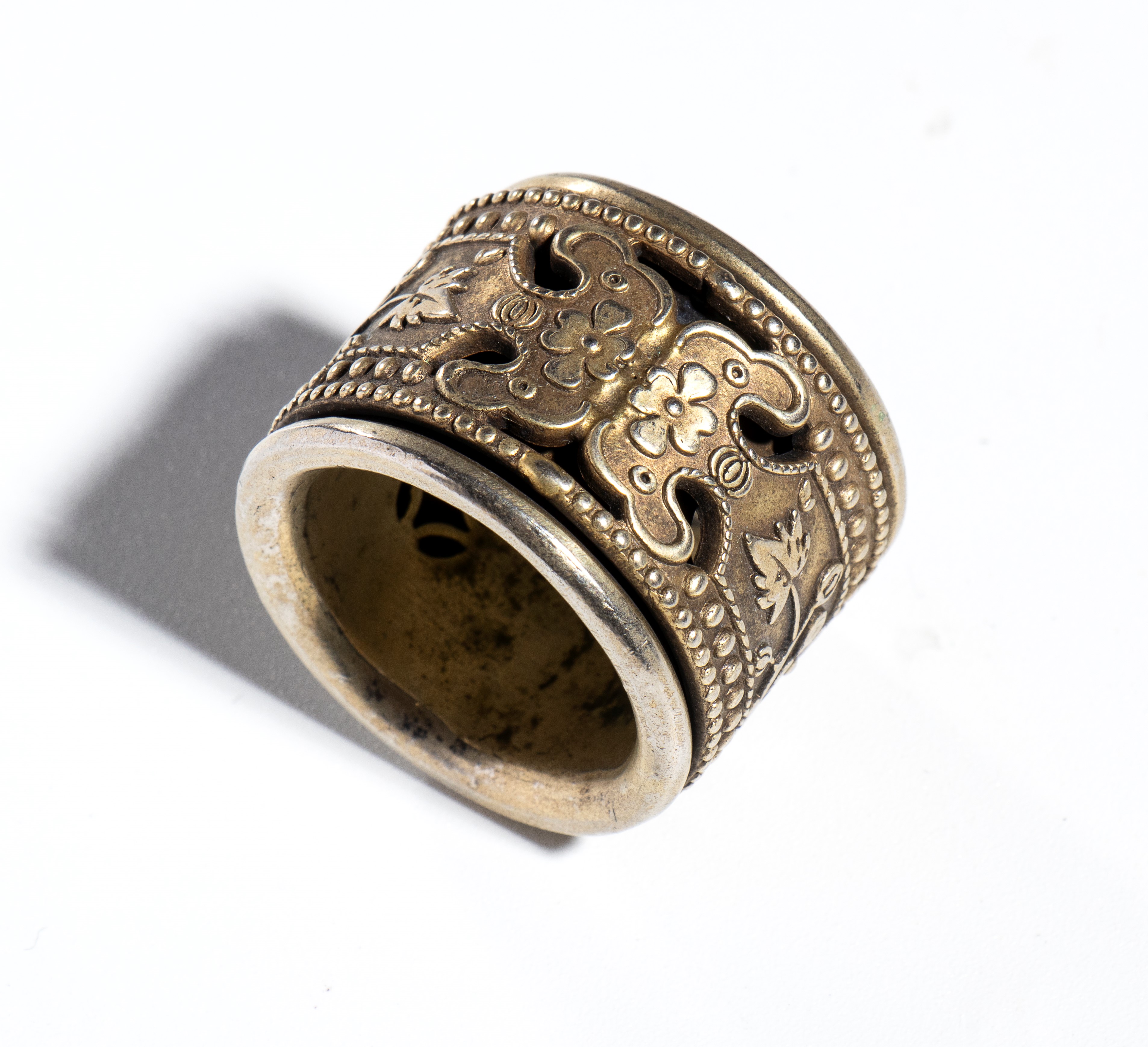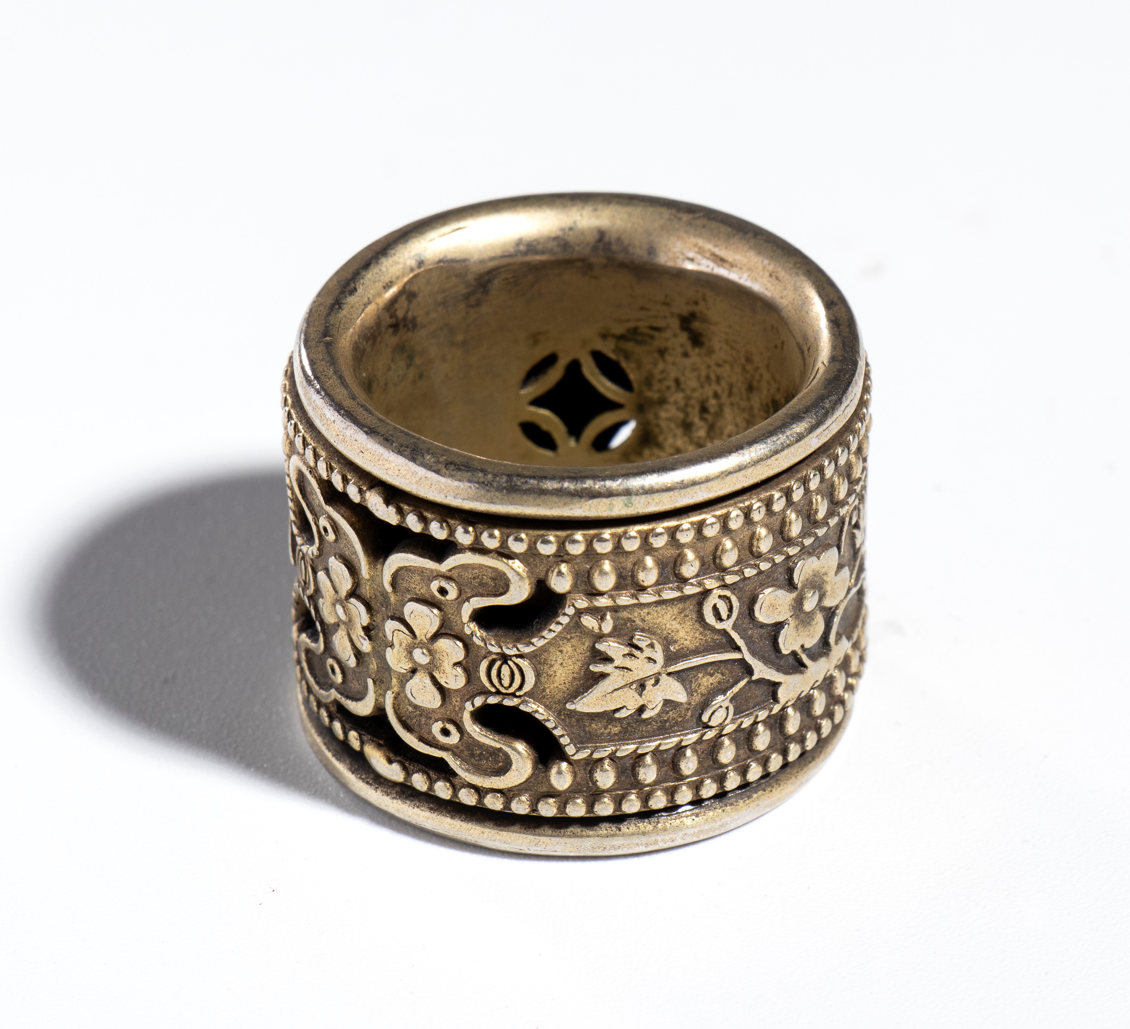 Bronze ring with floral carving, China, Qing dynasty (1644-1911)