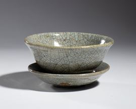 Guan bowl and saucer in the style of the Yuan Dynasty (1271-1368).