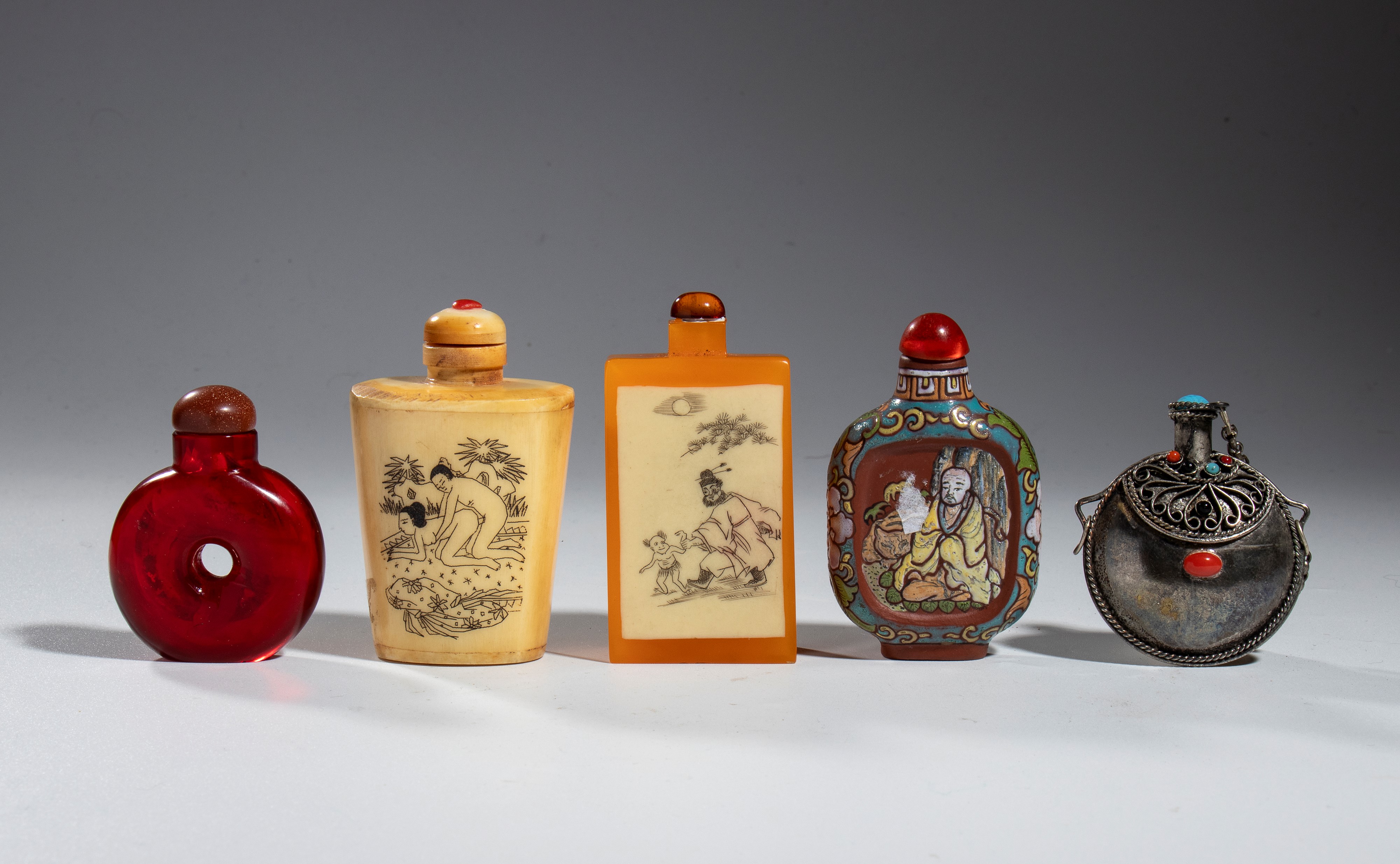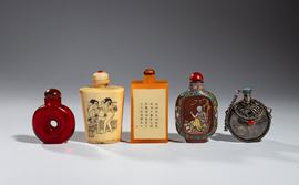 Lot of five snuffboxes, China, 20th century