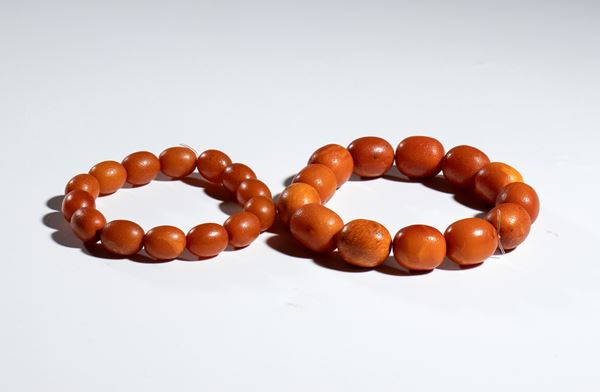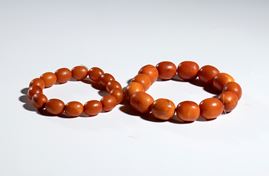Lot of two amber bracelets, 19th century