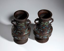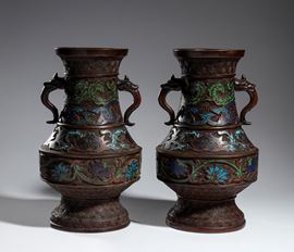 Pair of cloisonné bronze vases, Japan, Early 20th century