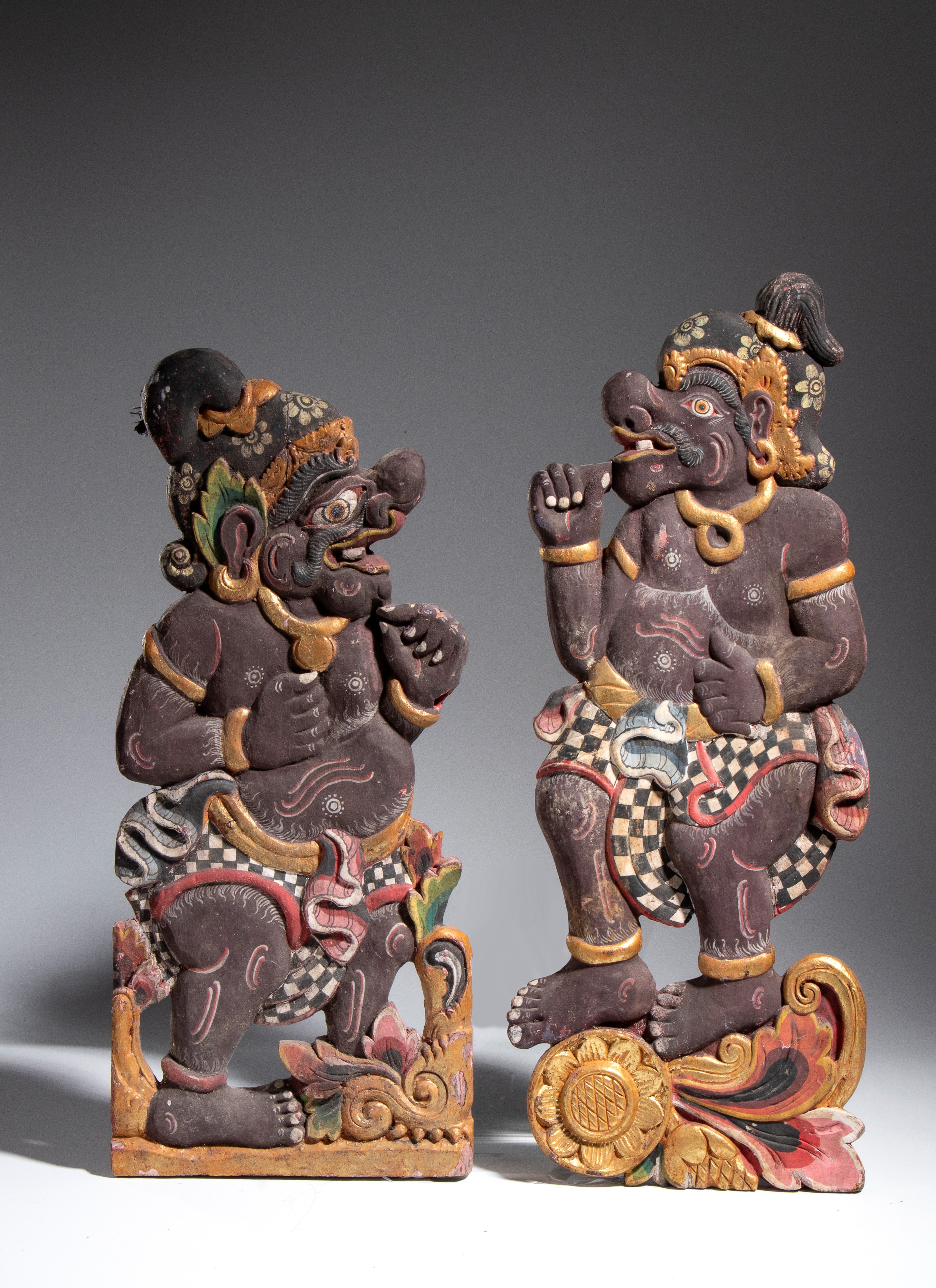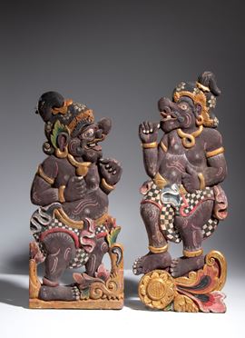Pair of painted wood carvings, Indonesia, 19th century